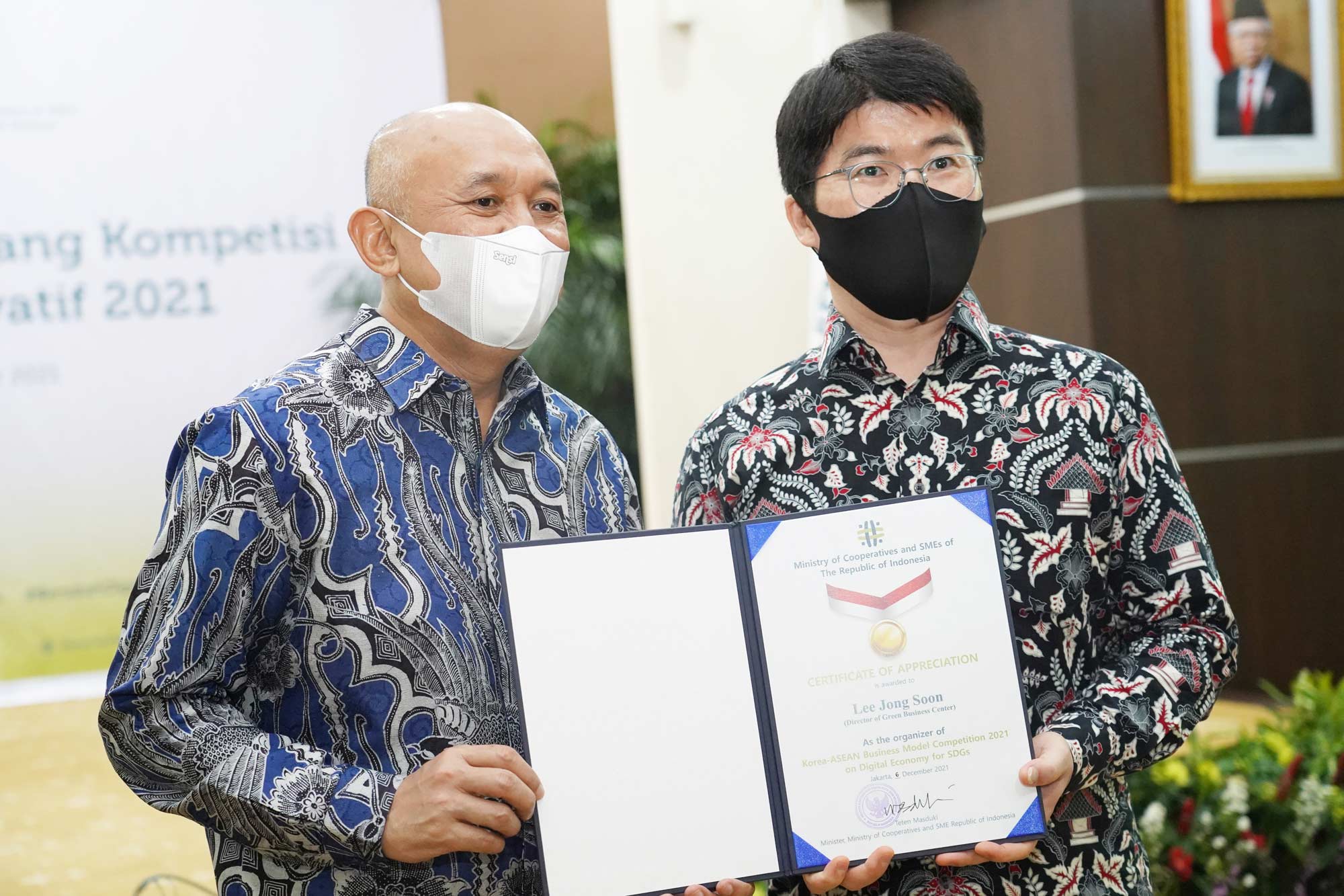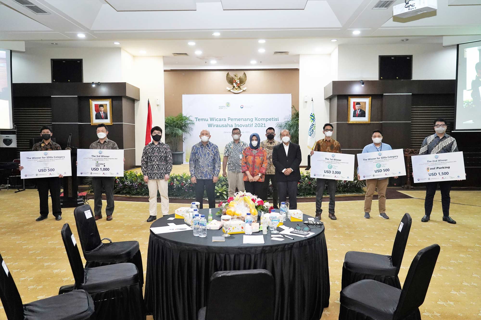 The Winners of Korea-ASEAN Business Model Competition 2021 on Digital Economy for SDGs with with Minister of Cooperative and SMEs of Republic of Indonesia