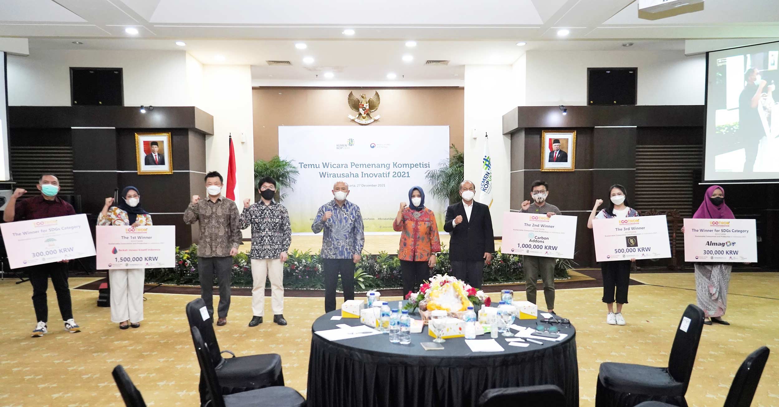 The Winners of Ecothon 2021 with Minister of Cooperative and SMEs of Republic of Indonesia