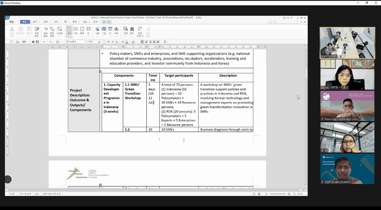 • ASEM Eco Innovation Center (ASEIC): 2 people – Ms. Hyunjee (Manager) and 1 person