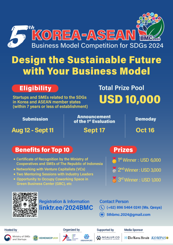 Sep 5, 2024 Extended Registration Deadline for the 5th KOREA-ASEAN Business Model Competition for SDGs 2024 View More