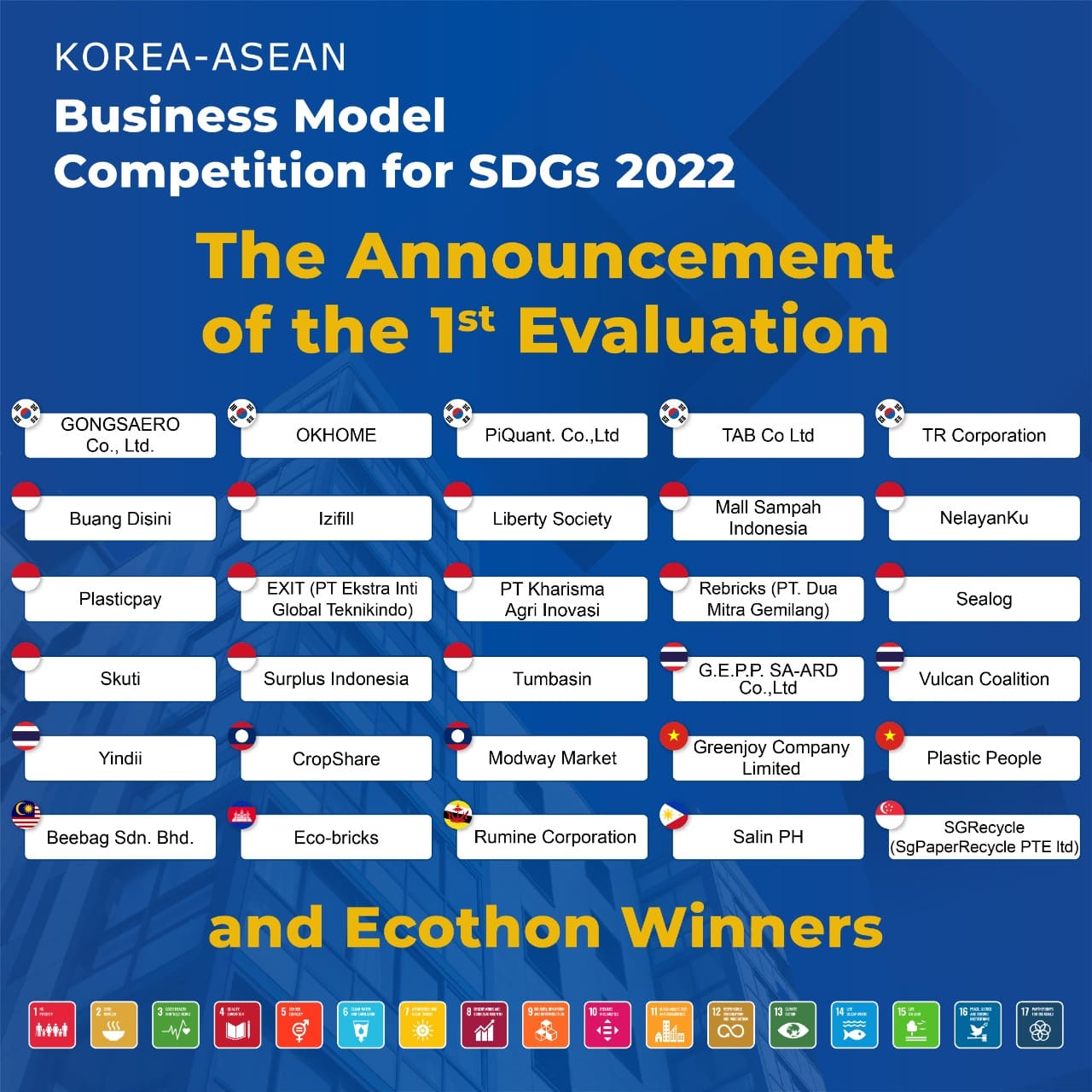 The Announcement of the 1st Evaluation of the Korea-ASEAN Business Model Competition for SDGs 2022
